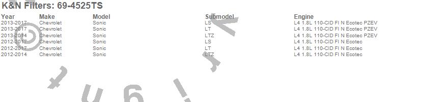 Sonic, Chevrolet, 2017, 2016, 2015, 2014, 2013, 2012