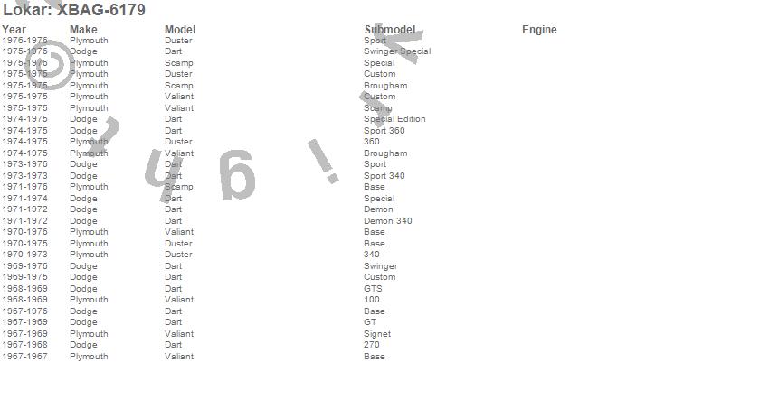 Dart, Duster, Scamp, Valiant, Dodge, Plymouth, 1976, 1975, 1974, 1973, 1972, 1971, 1970, 1969, 1968, 1967