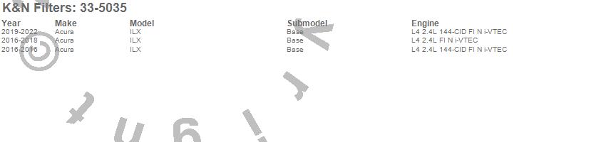 Below is an abbreviated list of applications for the Air Filter.