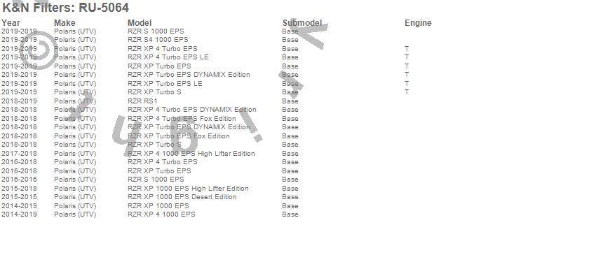 RZR RS1, RZR S 1000 EPS, RZR S4 1000 EPS, RZR XP 1000 EPS, RZR XP 1000 EPS Desert Edition, RZR XP 1000 EPS High Lifter Edition, RZR XP 4 1000 EPS, RZR XP 4 1000 EPS High Lifter Edition, RZR XP 4 Turbo EPS, RZR XP 4 Turbo EPS DYNAMIX Edition, RZR XP 4 Turbo EPS Fox Edition, RZR XP 4 Turbo EPS LE, RZR XP Turbo EPS, RZR XP Turbo EPS DYNAMIX Edition, RZR XP Turbo EPS Fox Edition, RZR XP Turbo EPS LE, RZR XP Turbo S, Polaris (UTV), 2019, 2018