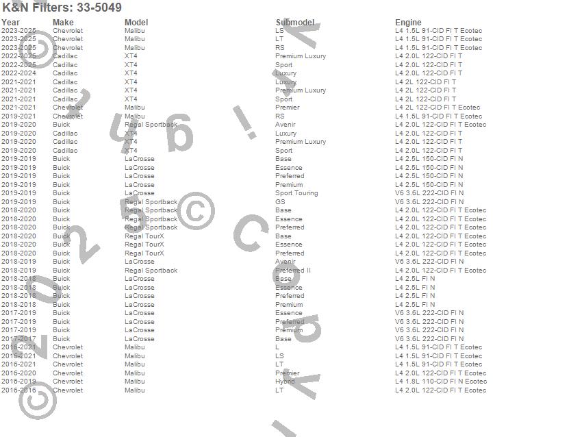 LaCrosse, Malibu, Regal Sportback, Regal TourX, XT4, Buick, Cadillac, Chevrolet, 2025, 2024, 2023, 2022, 2021, 2020, 2019, 2018, 2017, 2016