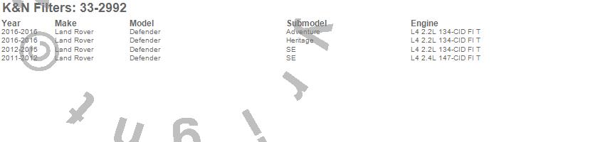 Below is an abbreviated list of applications for the Air Filter.