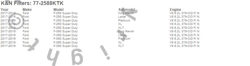 Below is an abbreviated list of applications for the Performance Induction Kit.