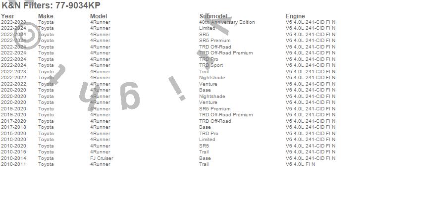 4Runner, FJ Cruiser, Toyota, 2024, 2023, 2022, 2020, 2019, 2018, 2017, 2016, 2015, 2014, 2013, 2012, 2011, 2010