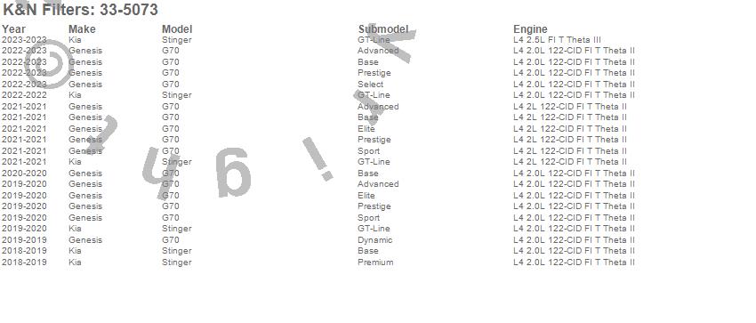 Below is an abbreviated list of applications for the Air Filter.