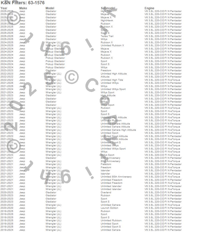 Below is an abbreviated list of applications for the 63 Series Aircharger Kit.