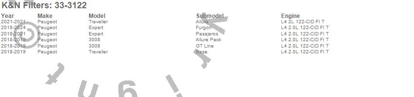 Below is an abbreviated list of applications for the Air Filter.