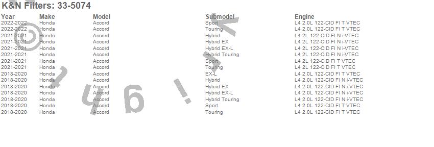 Below is an abbreviated list of applications for the Air Filter.