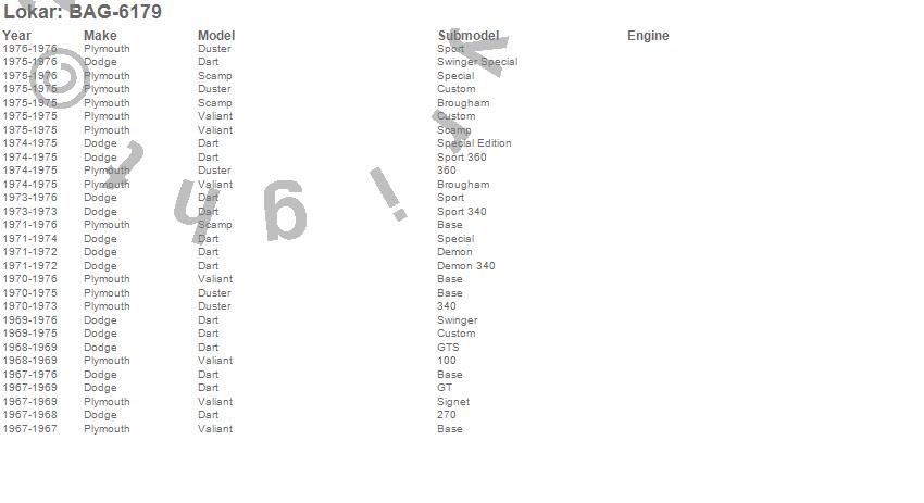Dart, Duster, Scamp, Valiant, Dodge, Plymouth, 1976, 1975, 1974, 1973, 1972, 1971, 1970, 1969, 1968, 1967