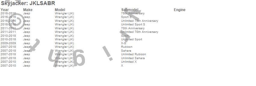 Wrangler (JK), Jeep, 2018, 2017, 2016, 2015, 2014, 2013, 2012, 2011, 2010, 2009, 2008, 2007