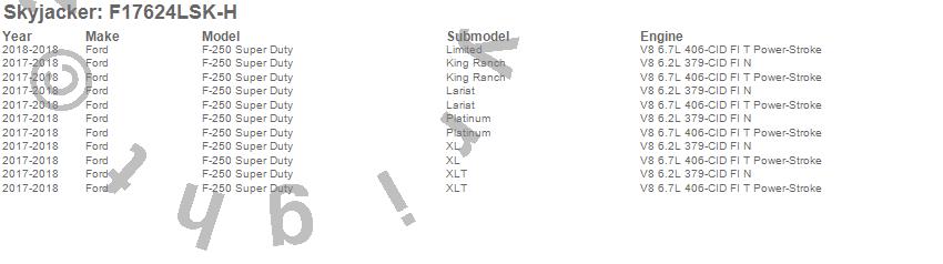 Skyjacker F17624LSK-H Suspension Lift Kit w/Shock 6 in. Lift - Class II 4-Link Sys - Incl. Ft. Coil Over Shocks - Track Bar/Radius Arm/Strg. Stab. Relo. Bracket - R. Lift Blocks/U-Bolts - Hydro 7k Shock