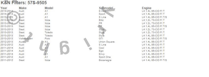 Below is an abbreviated list of applications for the 57i Series Induction Kit.