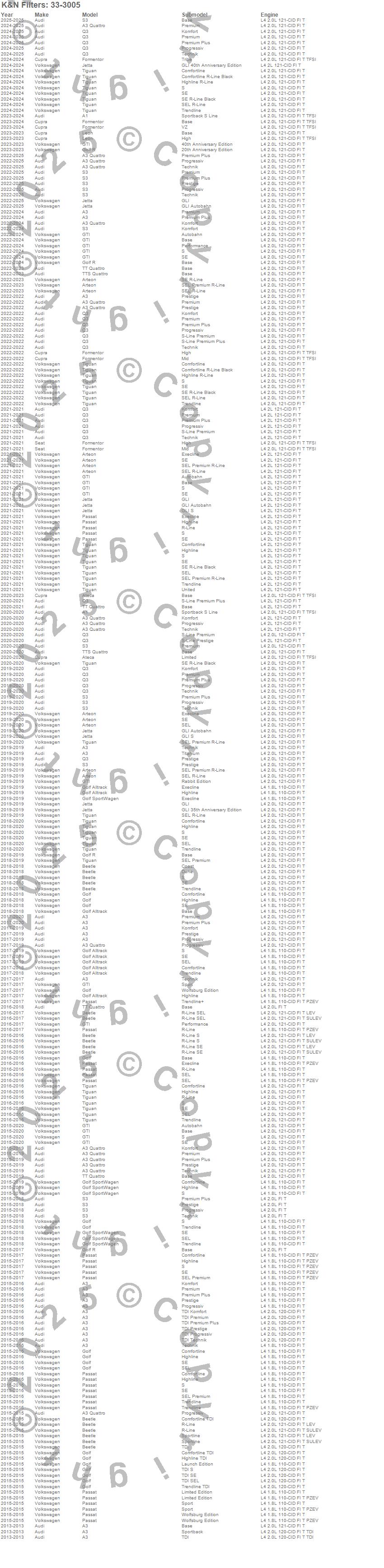 K&N Filters - Air Filter P/N 33-3005 Features: