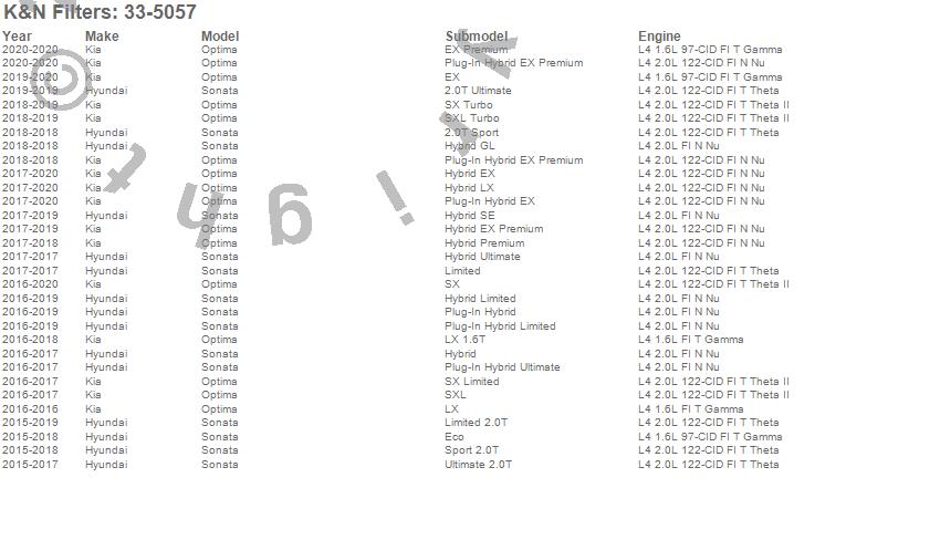 K&N Filters - Air Filter P/N 33-5057 Features: