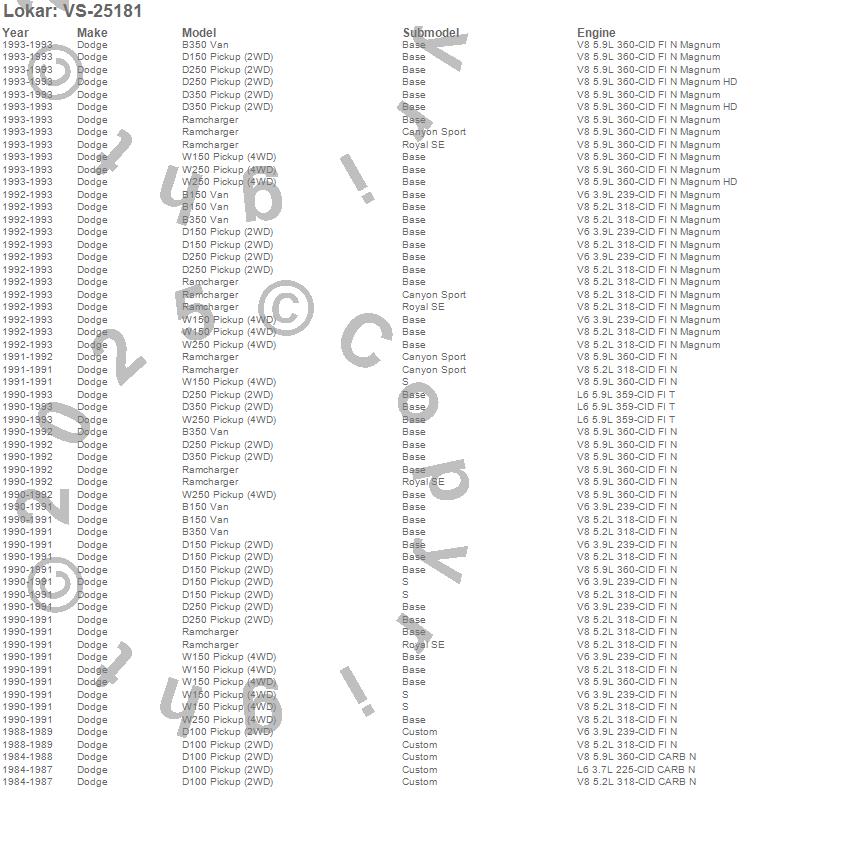 B150 Van, B350 Van, D100 Pickup, D150 Pickup, D250 Pickup, D350 Pickup, Ramcharger, W150 Pickup, W250 Pickup, Dodge, 1993, 1992, 1991, 1990, 1989, 1988, 1987, 1986, 1985, 1984