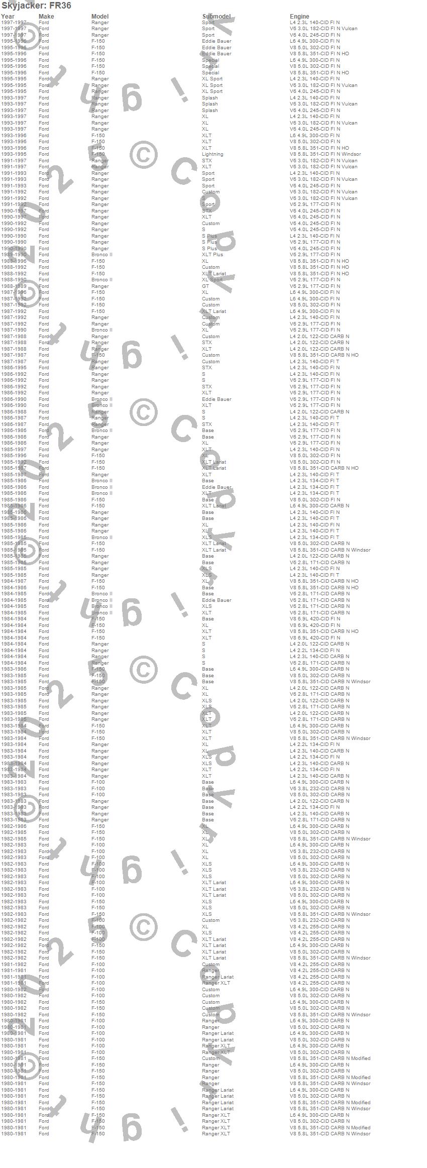 Bronco II, F-100, F-150, Ranger, Ford, 1997, 1996, 1995, 1994, 1993, 1992, 1991, 1990, 1989, 1988, 1987, 1986, 1985, 1984, 1983