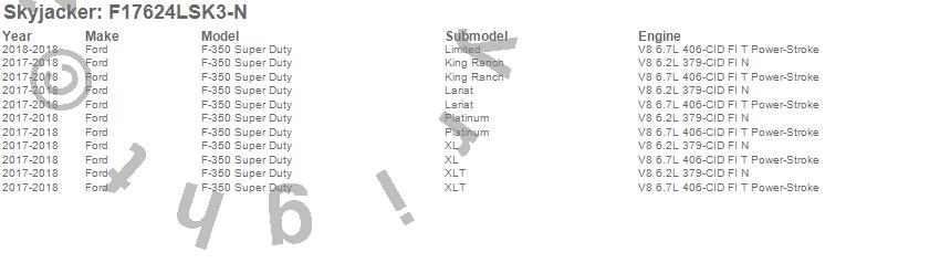 Skyjacker F17624LSK3-N Suspension Lift Kit w/Shock 6 in. Lift - Class II 4-Link Sys - Incl. Ft. Coil Over Shocks - Track Bar/Radius Arm/Strg. Stab. Relo. Bracket - R. Lift Block/U-Bolts - Nitro 8k Shocks