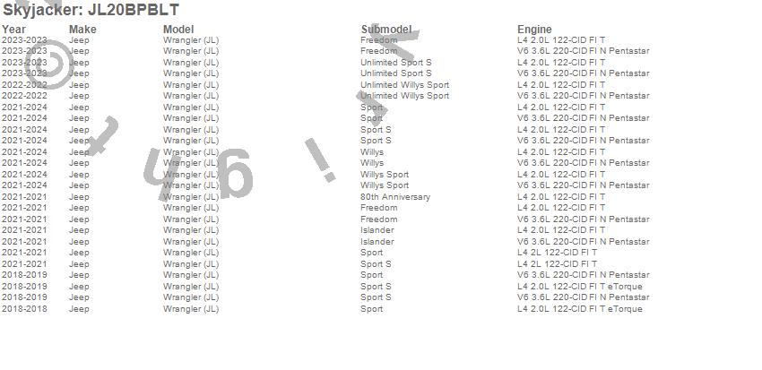 Wrangler (JL), Jeep, 2024, 2023, 2022, 2021, 2019, 2018