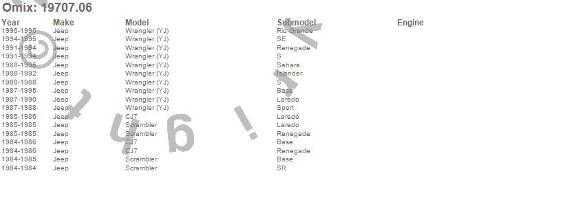 CJ7, Scrambler, Wrangler (TJ), Wrangler (YJ), Jeep, 1995, 1994, 1993, 1992, 1991, 1990, 1989, 1988, 1987, 1986, 1985, 1984