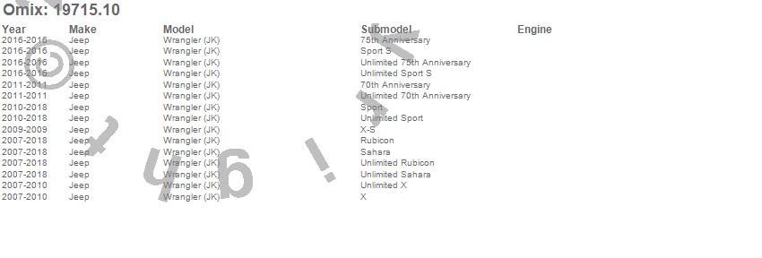 Wrangler (JK), Jeep, 2018, 2017, 2016, 2015, 2014, 2013, 2012, 2011, 2010, 2009, 2008, 2007