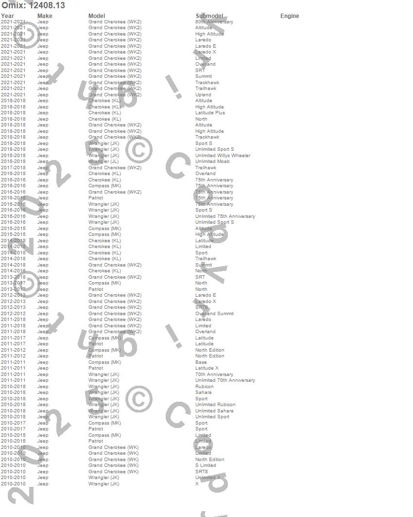 Cherokee (KL), Compass, Grand Cherokee (WK), Grand Cherokee (WK2), Wrangler (JK), Jeep, 2018, 2017, 2016, 2015, 2014, 2013, 2012, 2011, 2010