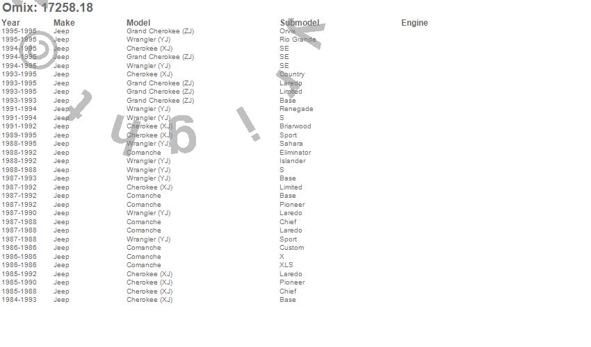 Cherokee (XJ), Comanche, Grand Cherokee (ZJ), Wrangler (YJ), Jeep, 1995, 1994, 1993, 1992, 1991, 1990, 1989, 1988, 1987, 1986, 1985, 1984
