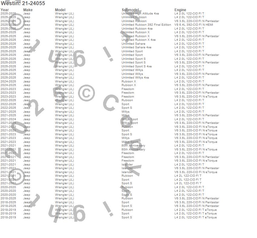 Below is an abbreviated list of applications for the PRO TRAXX 4 Oval Nerf Step Bars.
