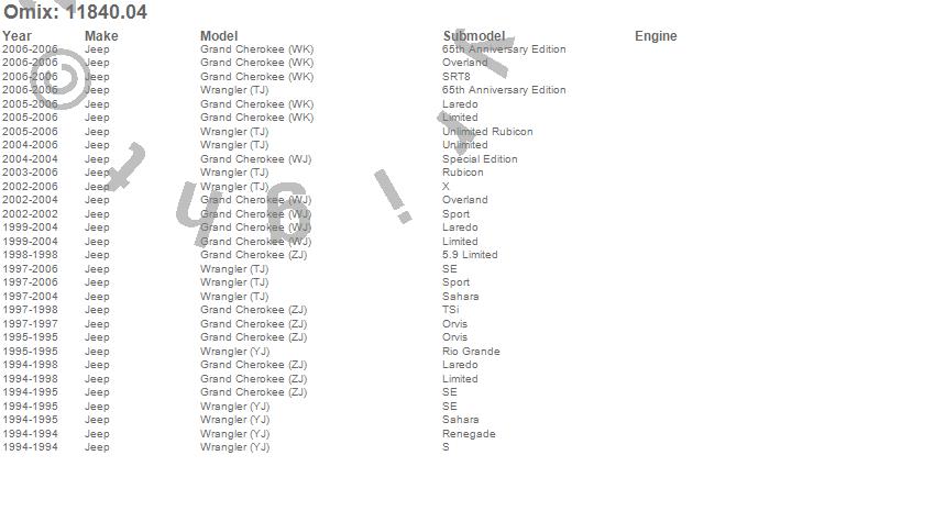 Grand Cherokee (WJ), Grand Cherokee (WK), Grand Cherokee (ZJ), Wrangler (LJ), Wrangler (TJ), Wrangler (YJ), Jeep, 2006, 2005, 2004, 2003, 2002, 2001, 2000, 1999, 1998, 1997, 1996, 1995, 1994