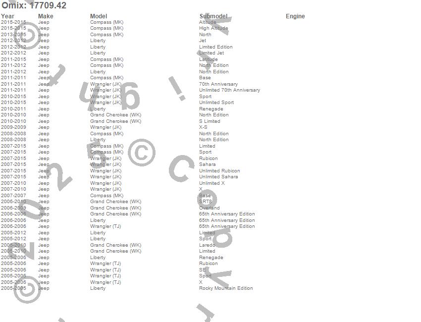 Compass, Grand Cherokee (WK), Liberty, Wrangler (JK), Wrangler (TJ), Jeep, 2015, 2014, 2013, 2012, 2011, 2010, 2009, 2008, 2007, 2006, 2005