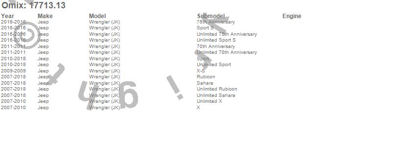 Wrangler (JK), Jeep, 2018, 2017, 2016, 2015, 2014, 2013, 2012, 2011, 2010, 2009, 2008, 2007