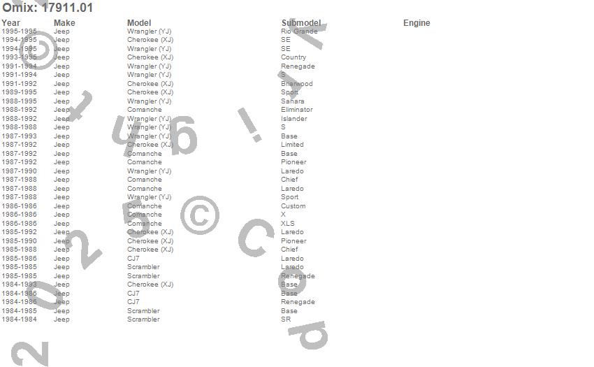 Cherokee (XJ), CJ7, Comanche, Scrambler, Wrangler (YJ), Jeep, 1995, 1994, 1993, 1992, 1991, 1990, 1989, 1988, 1987, 1986, 1985, 1984