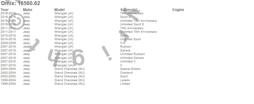 Grand Cherokee (WJ), Wrangler (JK), Jeep, 2018, 2017, 2016, 2015, 2014, 2013, 2012, 2011, 2010, 2009, 2008, 2007, 2004, 2003, 2002, 2001, 2000