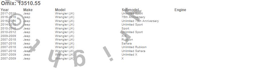 Wrangler (JK), Jeep, 2018, 2017, 2016, 2015, 2014, 2013, 2012, 2011, 2010, 2009, 2008, 2007
