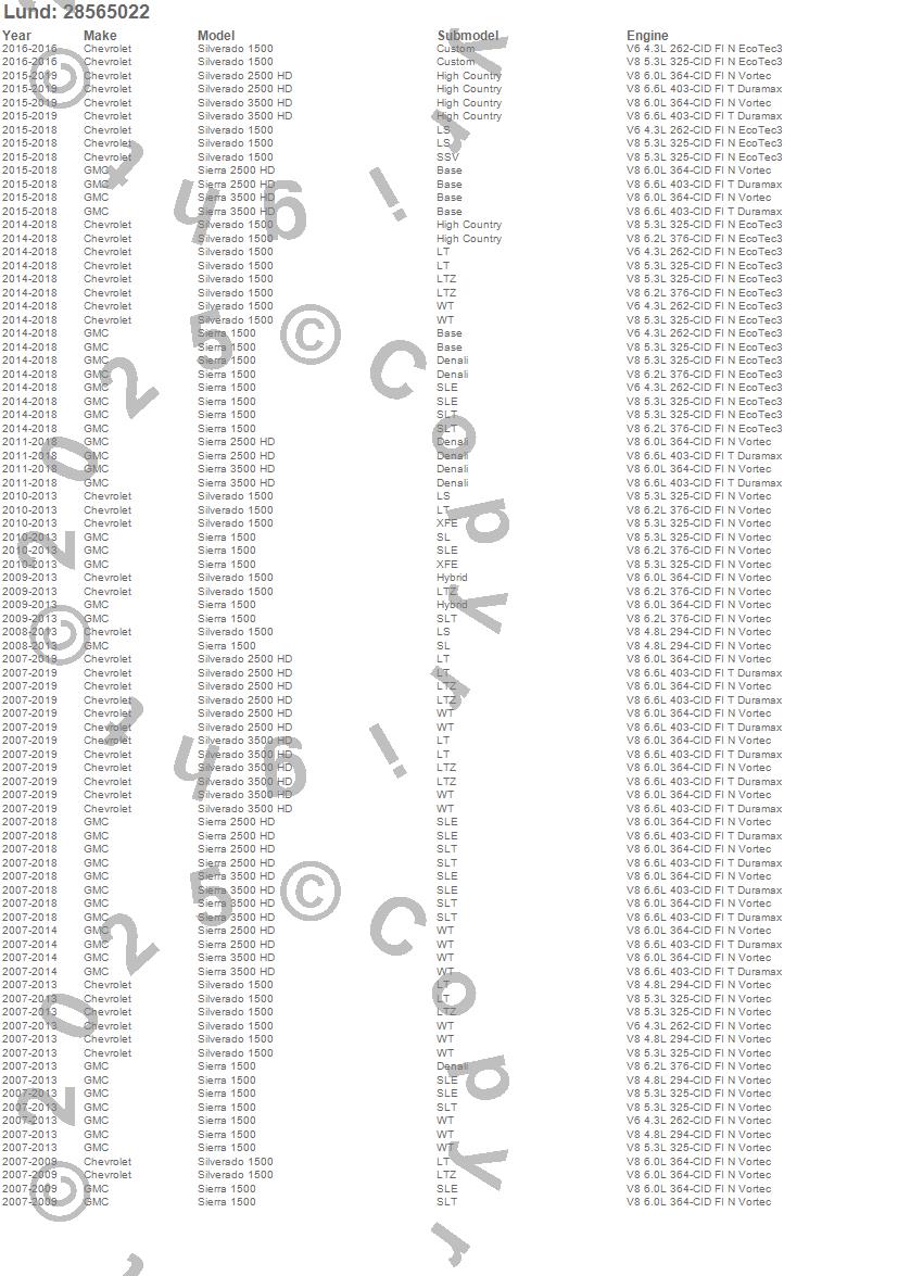 Sierra 1500, Sierra 2500 HD, Sierra 3500 HD, Silverado 1500, Silverado 2500 HD, Silverado 3500 HD, Chevrolet, GMC, 2019, 2018, 2017, 2016, 2015, 2014, 2013, 2012, 2011, 2010, 2009, 2008