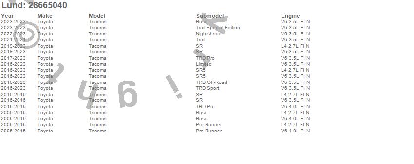 Tacoma, Toyota, 2023, 2022, 2021, 2020, 2019, 2018, 2017, 2016, 2015, 2014, 2013, 2012, 2011, 2010, 2009, 2008, 2007, 2006