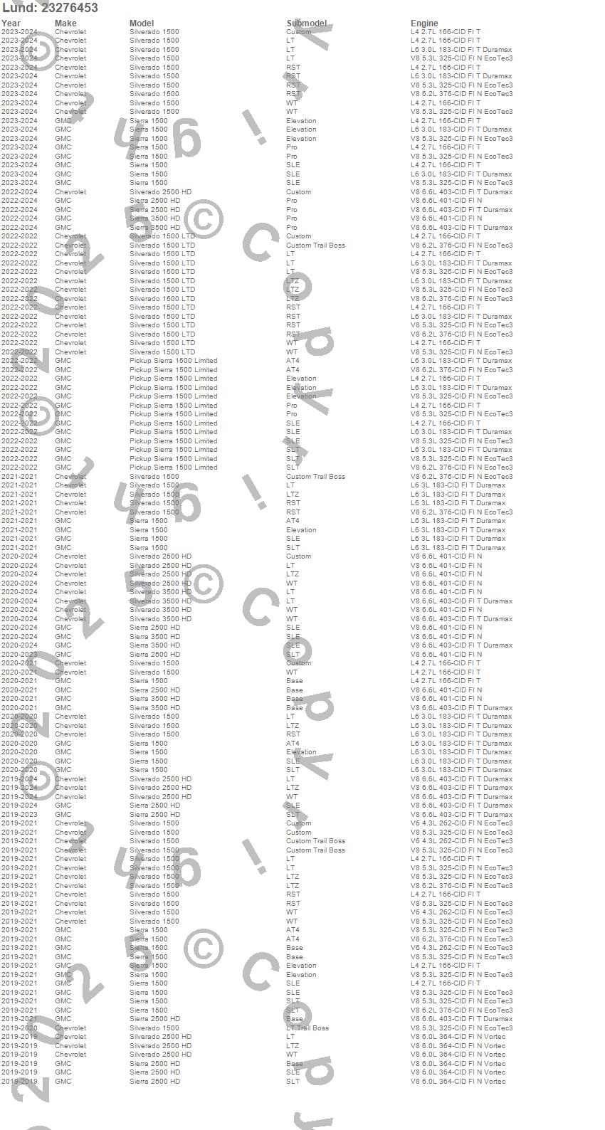 Pickup Sierra 1500 Limited, Sierra 1500, Sierra 2500 HD, Sierra 3500 HD, Silverado 1500, Silverado 1500 LTD, Silverado 2500 HD, Silverado 3500 HD, Chevrolet, GMC, 2026, 2025, 2024, 2023, 2022, 2021, 2020, 2019