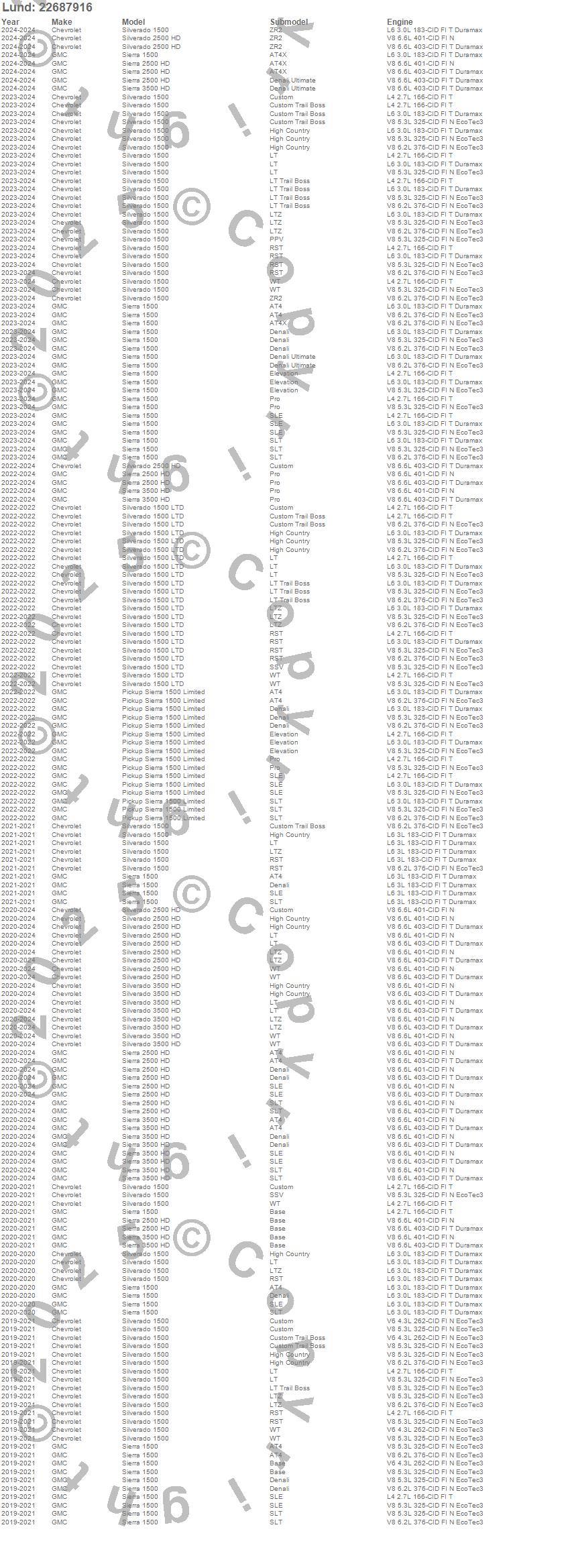Pickup Sierra 1500 Limited, Sierra 1500, Sierra 2500 HD, Sierra 3500 HD, Silverado 1500, Silverado 1500 LTD, Silverado 2500 HD, Silverado 3500 HD, Chevrolet, GMC, 2026, 2025, 2024, 2023, 2022, 2021, 2020, 2019