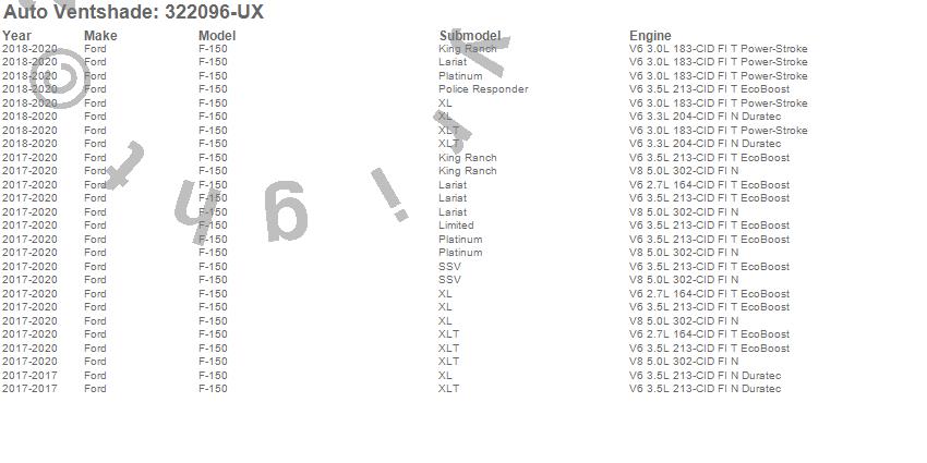 Below is an abbreviated list of applications for the Color Match Aeroskin Hood Protector.