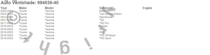 Auto Ventshade - Color Match Ventvisor Low Profile Deflector 4 pc. P/N 994036-40 Features: