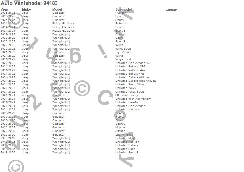 Below is an abbreviated list of applications for the Ventvisor Deflector 4 pc..