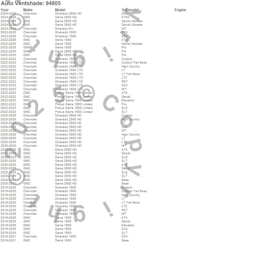 Below is an abbreviated list of applications for the Ventvisor Deflector 4 pc..