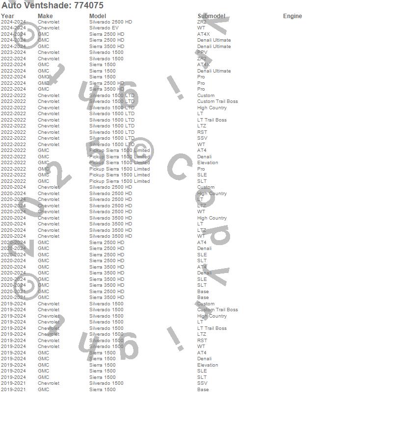 Below is an abbreviated list of applications for the Ventvisor Low Profile Deflector 4 pc..