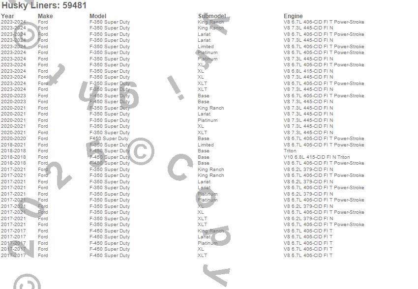 Below is an abbreviated list of applications for the Custom Molded Mud Guards.