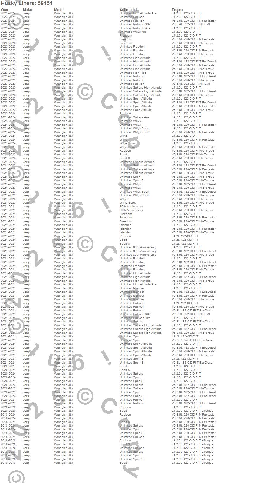 Below is an abbreviated list of applications for the Custom Molded Mud Guards.
