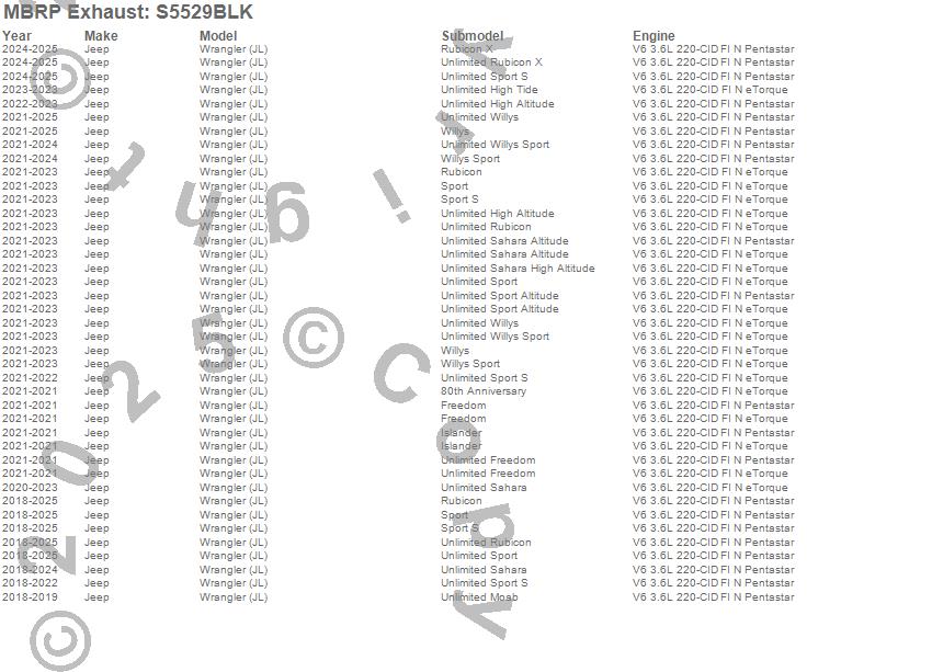 Below is an abbreviated list of applications for the Armor BLK Axle Back Exhaust System.