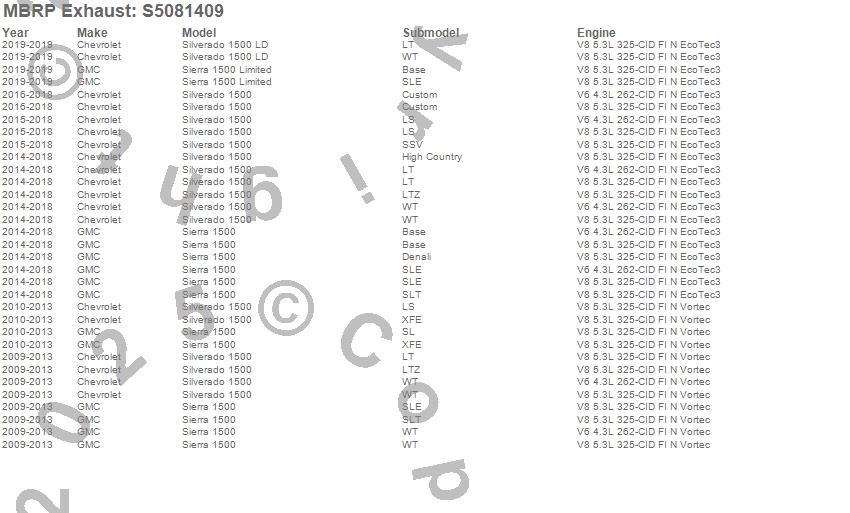 Below is an abbreviated list of applications for the Armor Plus Cat Back Exhaust System.
