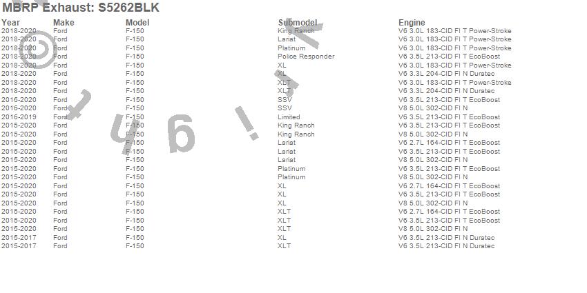 Below is an abbreviated list of applications for the Armor BLK Cat Back Exhaust System.