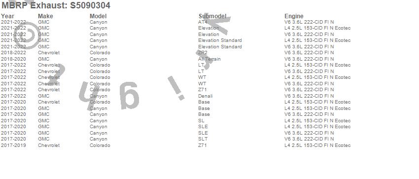 Below is an abbreviated list of applications for the Armor Pro Cat Back Exhaust System.