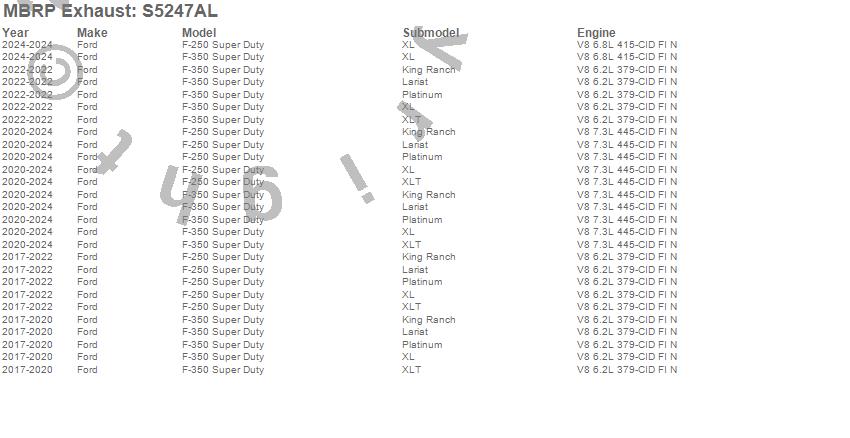 Below is an abbreviated list of applications for the Armor Lite Cat Back Exhaust System.