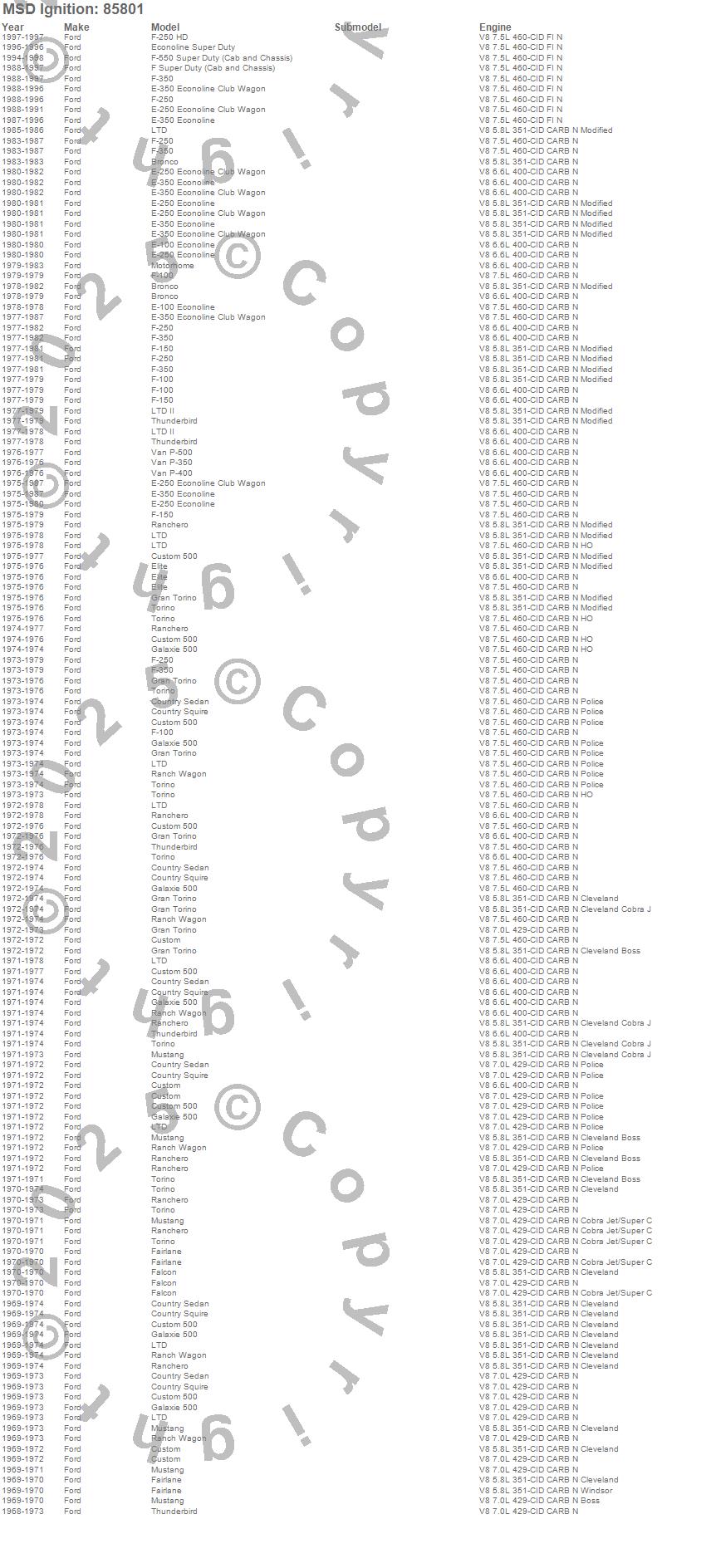 Bronco, Country Sedan, Country Squire, Custom, Custom 500, E-100 Econoline, E-250 Econoline, E-250 Econoline Club Wagon, E-350 Econoline, E-350 Econoline Club Wagon, Econoline Super Duty, Elite, F Super Duty, F-100, F-150, F-250, F-250 HD, F-350, F-550 Super Duty, Fairlane